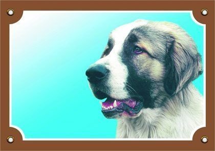 Voděodolná výstražná cedule s oky v rozích pro uchycení.