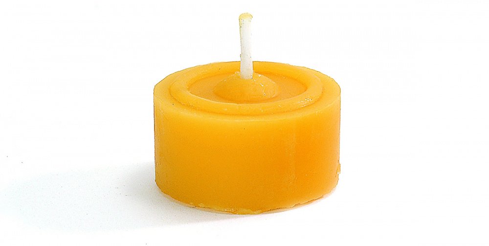 Svíčka ze včelího vosku. Výška svíčky je 1,7 cm. Průměr svíčky je 3,7 cm.